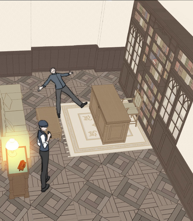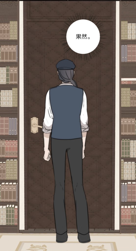 Yan Wei manages to rotate the vase, and the two halves of the bookcase part to reveal a door. As I expected.