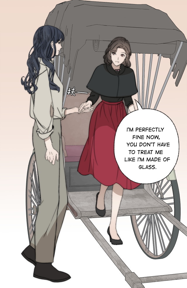 Later that evening, Yan Wei and Xu Youyi arrive back at the studio. Yan Wei carefully hands Xu Youyi down from the rickshaw.