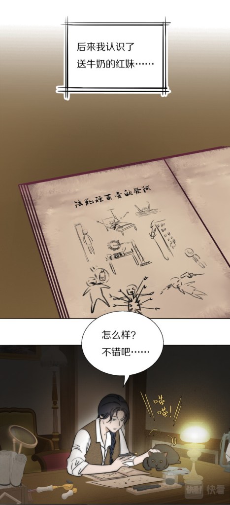 We flash back to Yan Wei doodling a series of gruesome deaths for A-Fa. The page is labelled ‘One Hundred Ways for A-Fa to Die’. ‘What do you think?’ she asks Good Luck. ‘They’re not bad, right?’