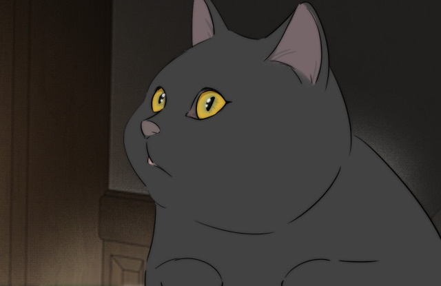 Good Luck stares up at her, wide-eyed.
