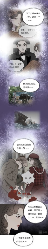 He hired Agent Bai to make an attempt on my life, she muses. And then Agent Bai tried to kill Xie Yifan. She flashes back to the moment Xie Yifan was shot. He’s already shown that hiring an assassin is no big deal to him. As long as I can work out what his motive is—
