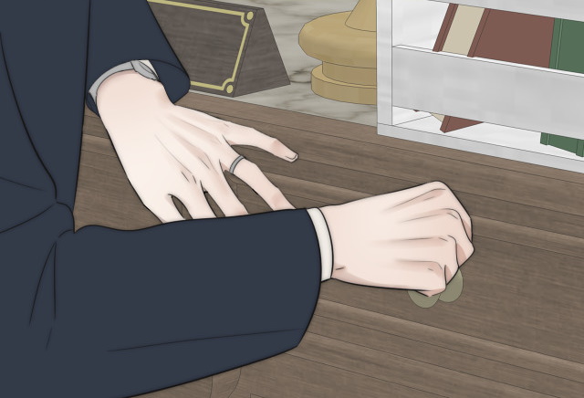 She searches through the papers on top of Zhou Heng’s desk, but to no avail. Then she catches sight of a trophy on the top shelf of one of the bookcases. She takes down the trophy, and finds a set of keys inside it. Found it!