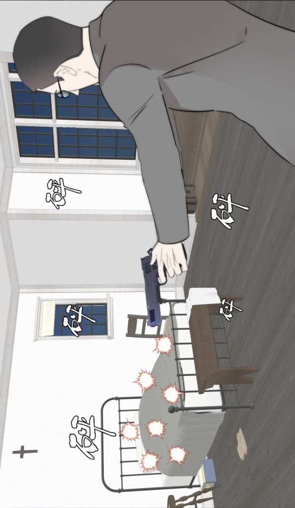 He fires repeatedly into Xie Yifan’s bed.