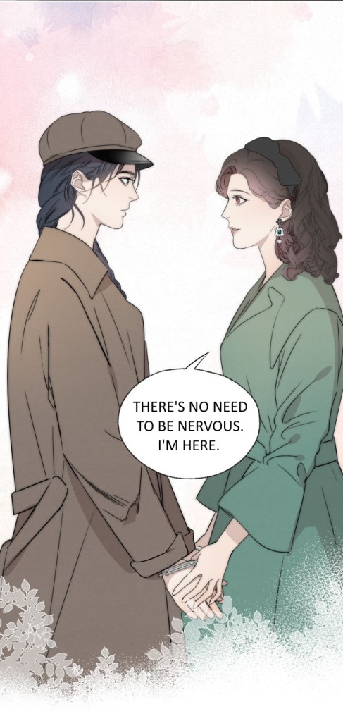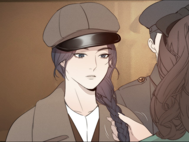 She rearranges Yan Wei’s braid and straightens the lapels of Yan Wei’s coat.