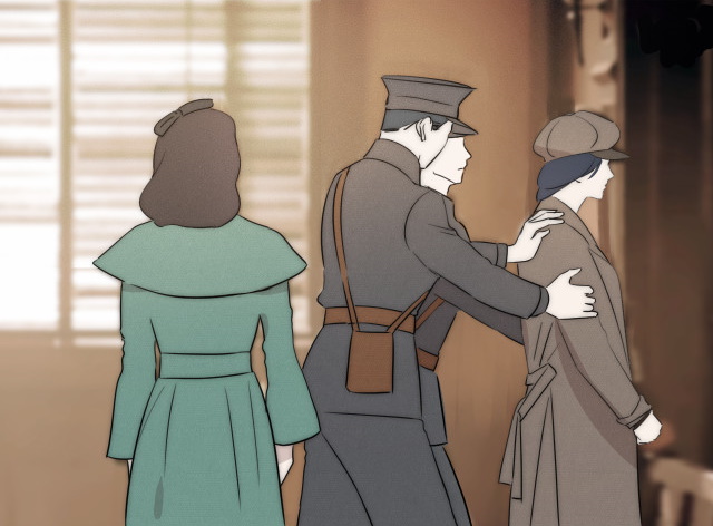 …then the police officers hustle Yan Wei off to the courtroom, leaving Xu Youyi to gaze after her departing back.