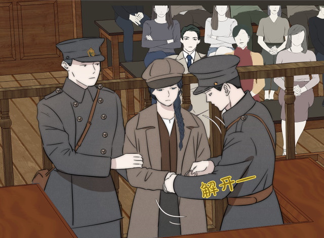 Xu Youyi enters the courtroom. As she passes the dock, she and Yan Wei exchange a glance. She smiles.