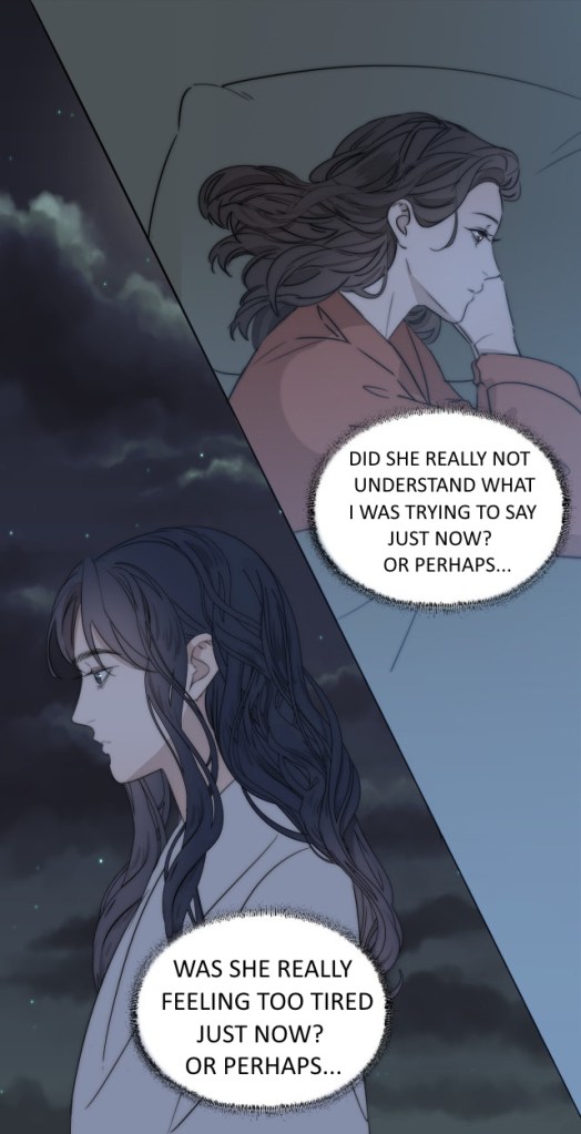 They both flash back to the many moments they’ve shared together. But when I think about everything we’ve been through together since we met… they wonder in unison. All of this — is this really just friendship?