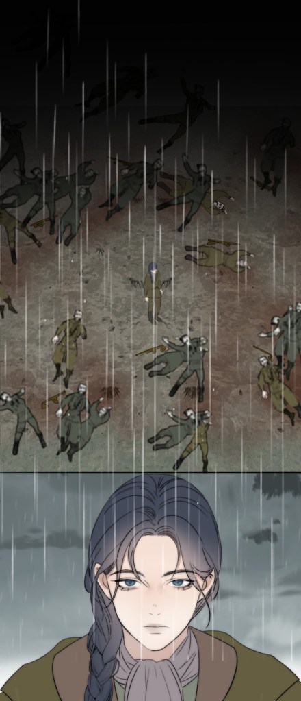 Yan Wei flashes back to a memory of herself, standing in the middle of a battlefield, a lone survivor surrounded by the corpses of other soldiers.