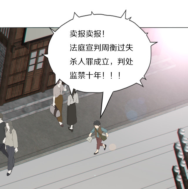 The next morning, a newsboy rushes along the street outside the studio, shouting, ‘Extra! Extra! The court has convicted Zhou Heng of manslaughter, and sentenced him to imprisonment for ten years!’